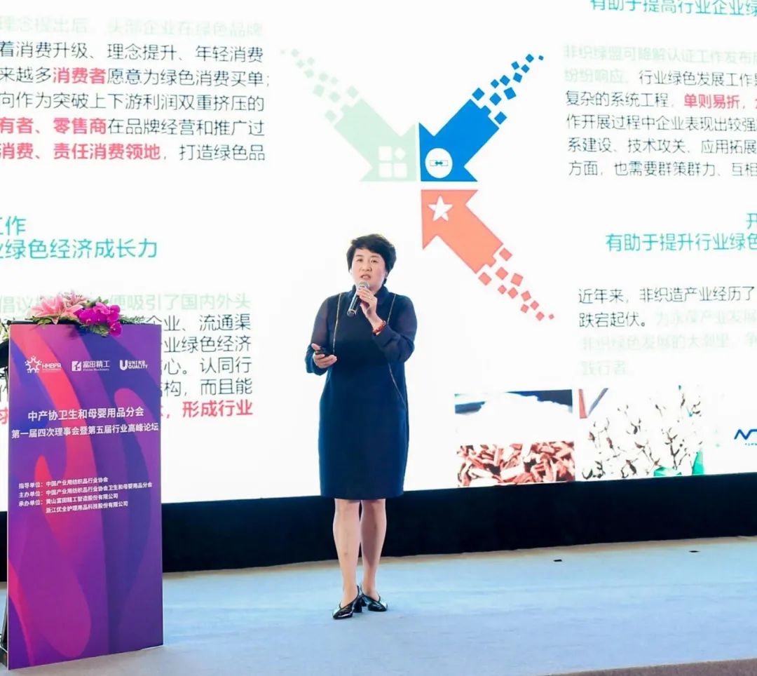 I dagens verden er grøn udvikling ved at blive en vigtig faktor i opbygningen af bæredygtig konkurrenceevne og fremtidens stemme for industriel udvikling. Vicepræsident Li Guimei introducerede den nuværende situation for grøn bæredygtig udvikling i nonwovens-industrien, den ikke-vævede grønne alliance af middelklasseforeningen og de seneste fremskridt med "bionedbrydelig" certificering på baggrund af relevante politikker for udvikling af grønt økonomien i verden og Kina. Da han talte om den nye situation og nye udfordringer, som den grønne og bæredygtige udvikling af nonwovensindustrien står over for i den nye æra, sagde Li Guimei, at industriens fremtidige arbejdsprioriteter hovedsageligt omfatter følgende fire aspekter: For det første gradvist at forbedre den infrastrukturrelaterede til grøn udvikling, såsom standarder, certificering, tilsyn og evaluering; For det andet fremme de centrale fælles teknologier for grøn bæredygtig udvikling i industrien og fremme innovation, popularisering og anvendelse af grønne udviklingsteknologier; For det tredje, udføre grønne produkter, grønne fabrikker og andet arbejde, og give fuld spil til den førende og eksemplariske rolle for nøglevirksomheder i industrien; For det fjerde, gå ind for grønt forbrug og etablere en følelse af socialt ansvar for grøn udvikling af industrien.