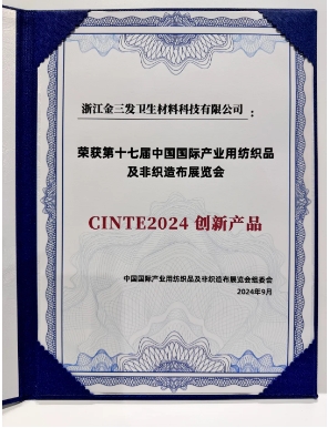 "Green Super Soft Sandwich Spunlace Nonwoven" indsendt af Zhejiang Kingsafe Sanitary Material Technology Co., Ltd. vandt det grønne udviklingsinnovationsprodukt.